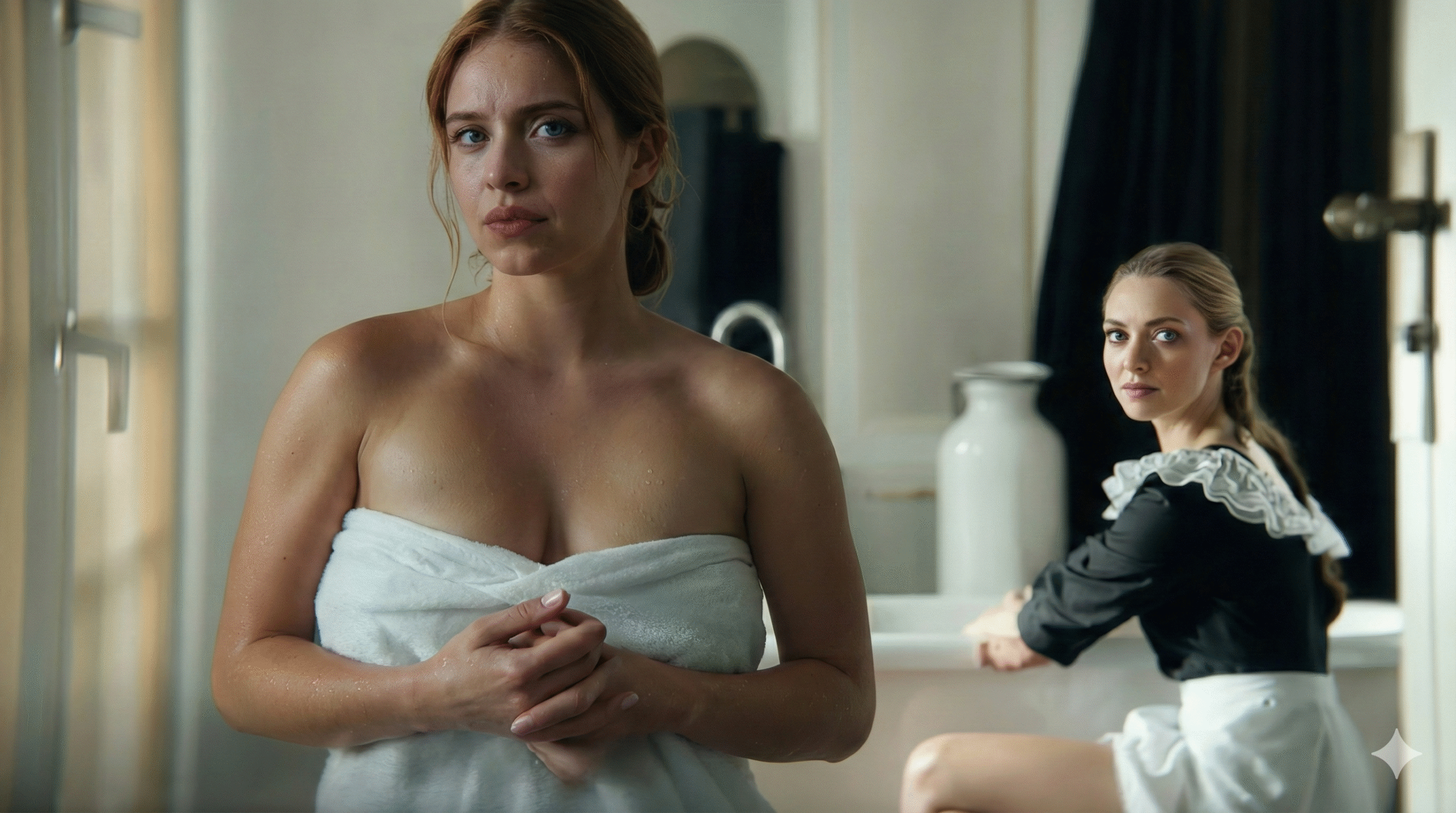 Seyfried, por sua vez, devora o papel de Nina com gosto. Ela entrega uma mulher de classe alta cuja sofisticação esconde fissuras cada vez mais evidentes. Nina não é apenas a patroa cruel, é uma bomba-relógio emocional que Seyfried detona com precisão de relojoeiro. A química entre as duas atriz impulsiona cada reviravolta, transformando o que poderia ser um duelo maniqueísta num jogo de espelhos onde ninguém sai ileso.