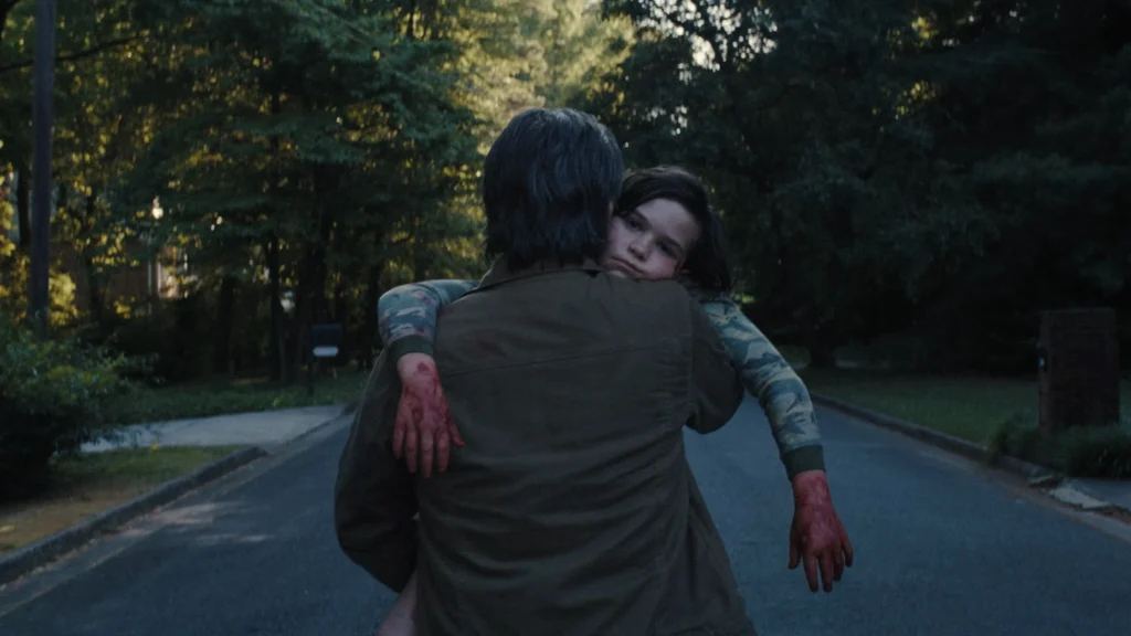 O que torna A Hora do Mal genuinamente inquietante não é sua revelação sobrenatural no terceiro ato — embora a presença de Amy Madigan como a Tia Gladys seja perturbadora em um patamar que remete ao melhor do horror clássico.