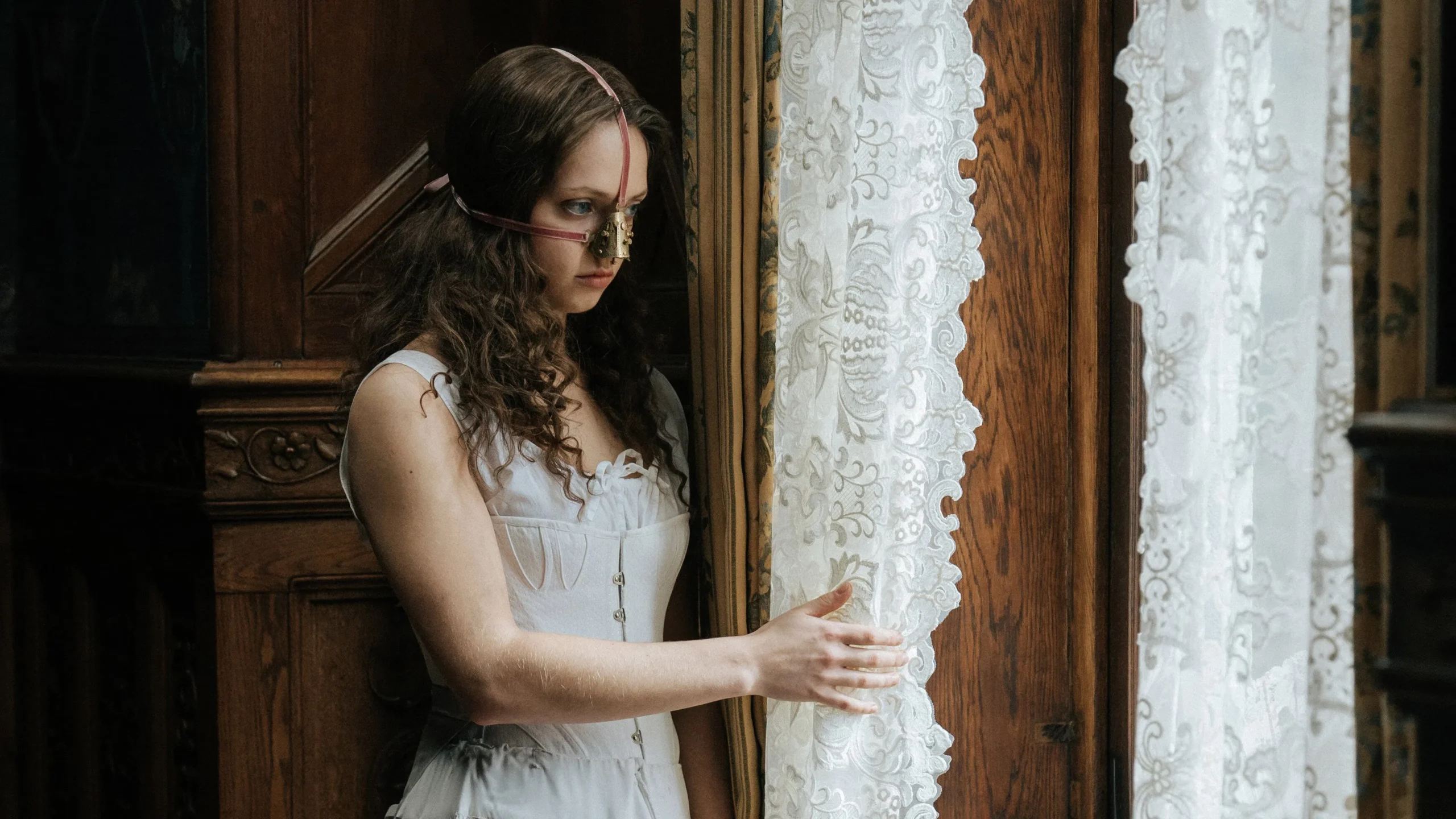 Uma das escolhas mais interessantes do filme é a caracterização de Agnes/Cinderela. Ela não é a donzela inocente da versão Disney. É uma jovem que faz sexo com o cocheiro, que manipula sua imagem de pureza, que entende perfeitamente as regras do jogo e as usa a seu favor. Quando a família a rebaixa ao status de serva e a apelidada de Cinderela, Agnes aceita a humilhação — mas como estratégia, não como destino.
