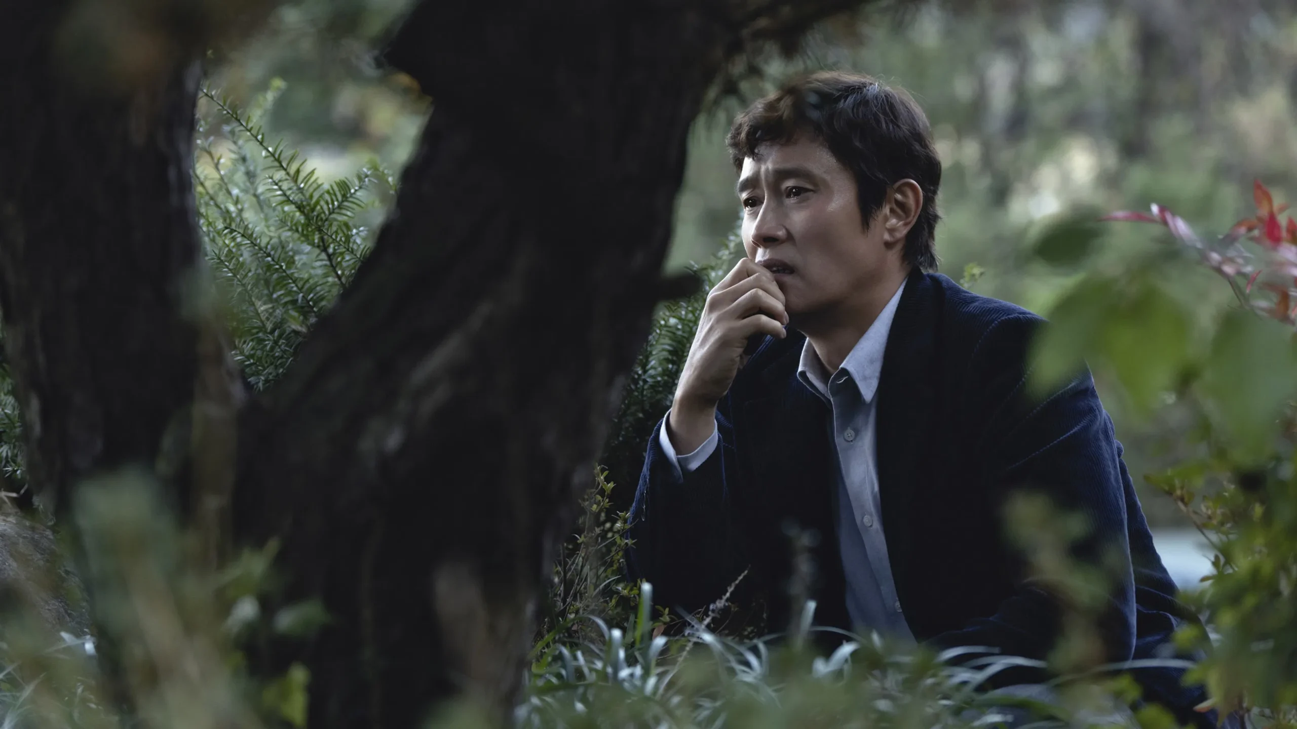 Park Chan-wook sempre soube onde colocar a câmera. Em A Única Saída, ele trabalha com o diretor de fotografia Kim Woo-hyung para criar uma paleta visual que espelha a degradação moral do protagonista. A primeira metade do filme é banhada em cores saturadas — verdes exuberantes, luz dourada de verão. À medida que Man-su cruza linhas irreversíveis, a paleta escurece. O inverno chega, de forma literal e metafórica.