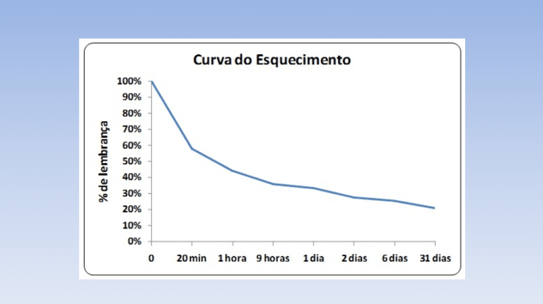 O resultado ficou conhecido como a Curva do Esquecimento: sem reforço, nós perdemos a maior parte do que absorvemos em questão de horas.